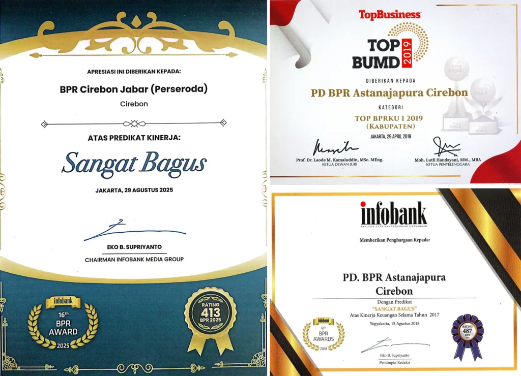 Dari sisi tata kelola, PT BPR Cirebon Jabar juga mencatat capaian penting. Pemerintah Provinsi Jawa Barat memberikan apresiasi atas penerapan prinsip Good Corporate Governance setelah melakukan penilaian dan audit yang melibatkan BPKP terhadap BUMD di wilayah Jawa Barat. Pengakuan tersebut menjadi penanda bahwa kondisi keuangan dan tata kelola bank dinilai sehat, sekaligus menegaskan keseriusan manajemen dalam menjaga transparansi dan akuntabilitas pengelolaan dana publik.